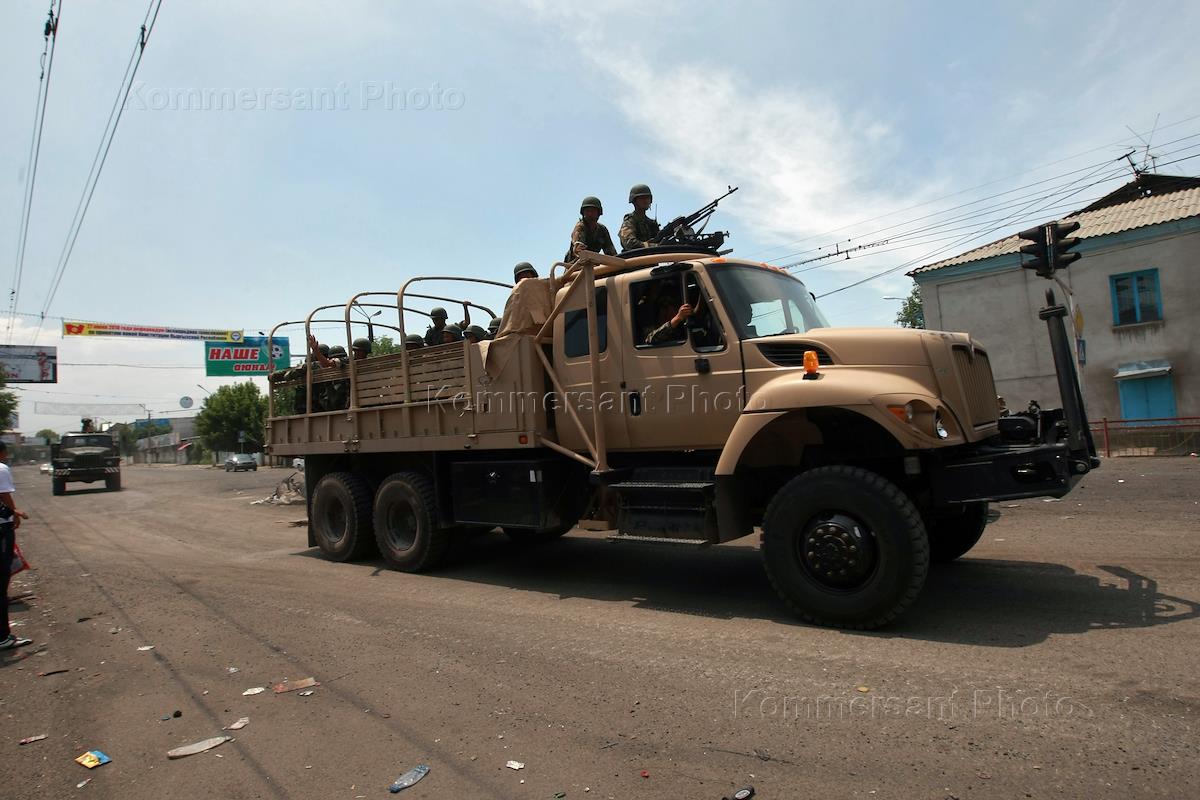 Межэтнические столкновения в городе Ош. Военные на одной из улиц города.