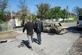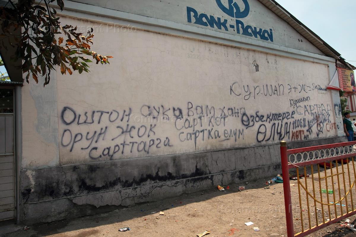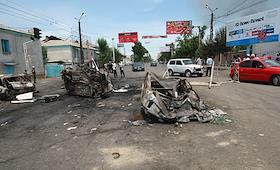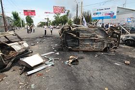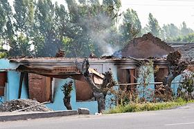 Межэтнические столкновения в городе Ош. Последствия беспорядков на одной из улиц города.