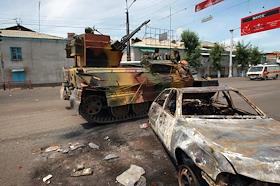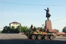 Межэтнические столкновения в городе Ош. Военные на одной из улиц города.