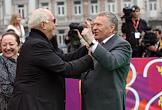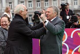 Председатель союза кинематографистов России, кинорежиссер Никита Михалков (слева) и французский режиссер Клод Лелуш (второй слева) на церемонии открытия XXXII Московского международного кинофестиваля (ММКФ). Церемония прошла в кинотеатре "Пушкинский".