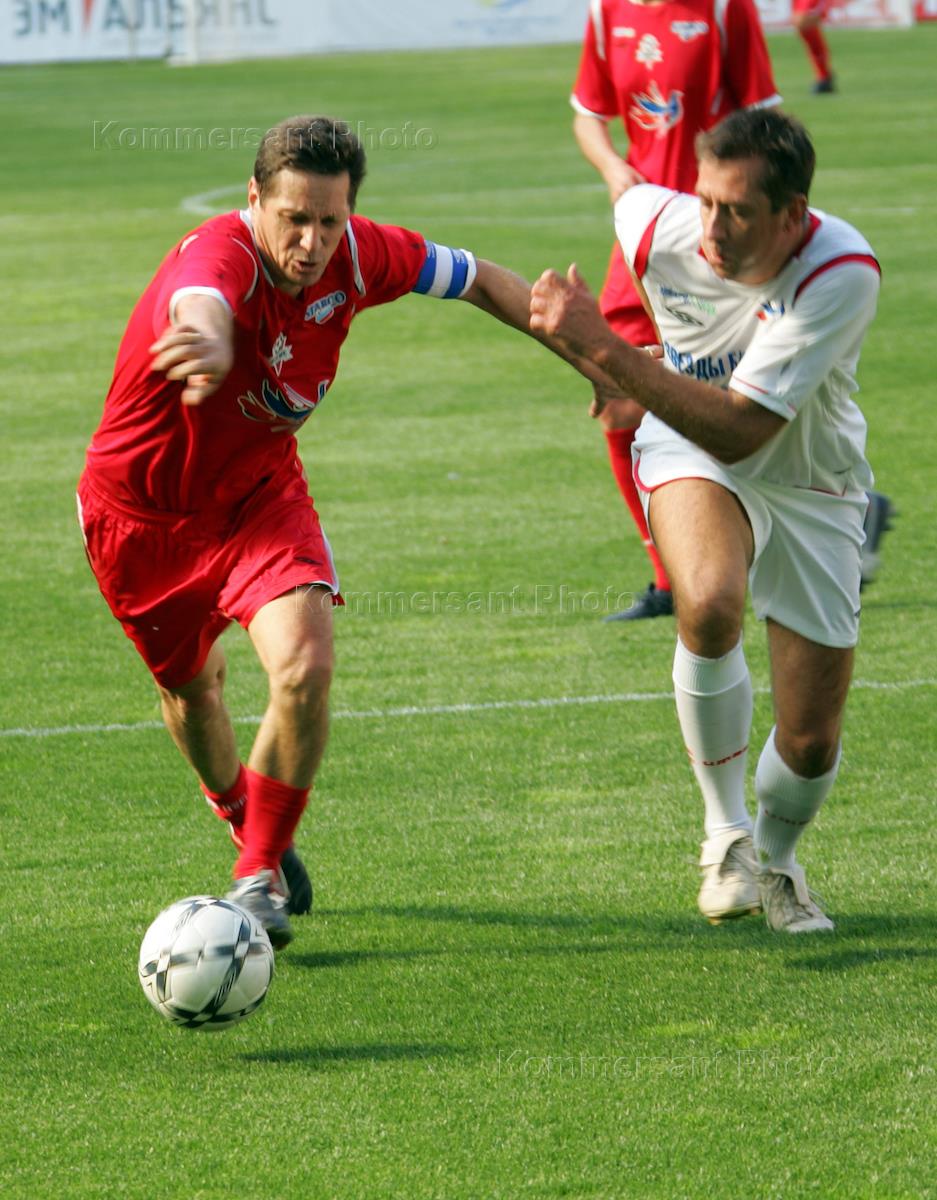 Благотворительная акция "Под флагом Добра". Член комитета Государственной думы России по энергетике Валерий Драганов во время футбольного матча между командами "Звезды политики и эстрады" и "Звезды бизнеса и футбола". Матч прошел на стадионе "Локомотив".