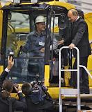 Председатель правительства России Владимир Путин во время посещения завода по производству строительной техники "Комацу" в Ярославле.