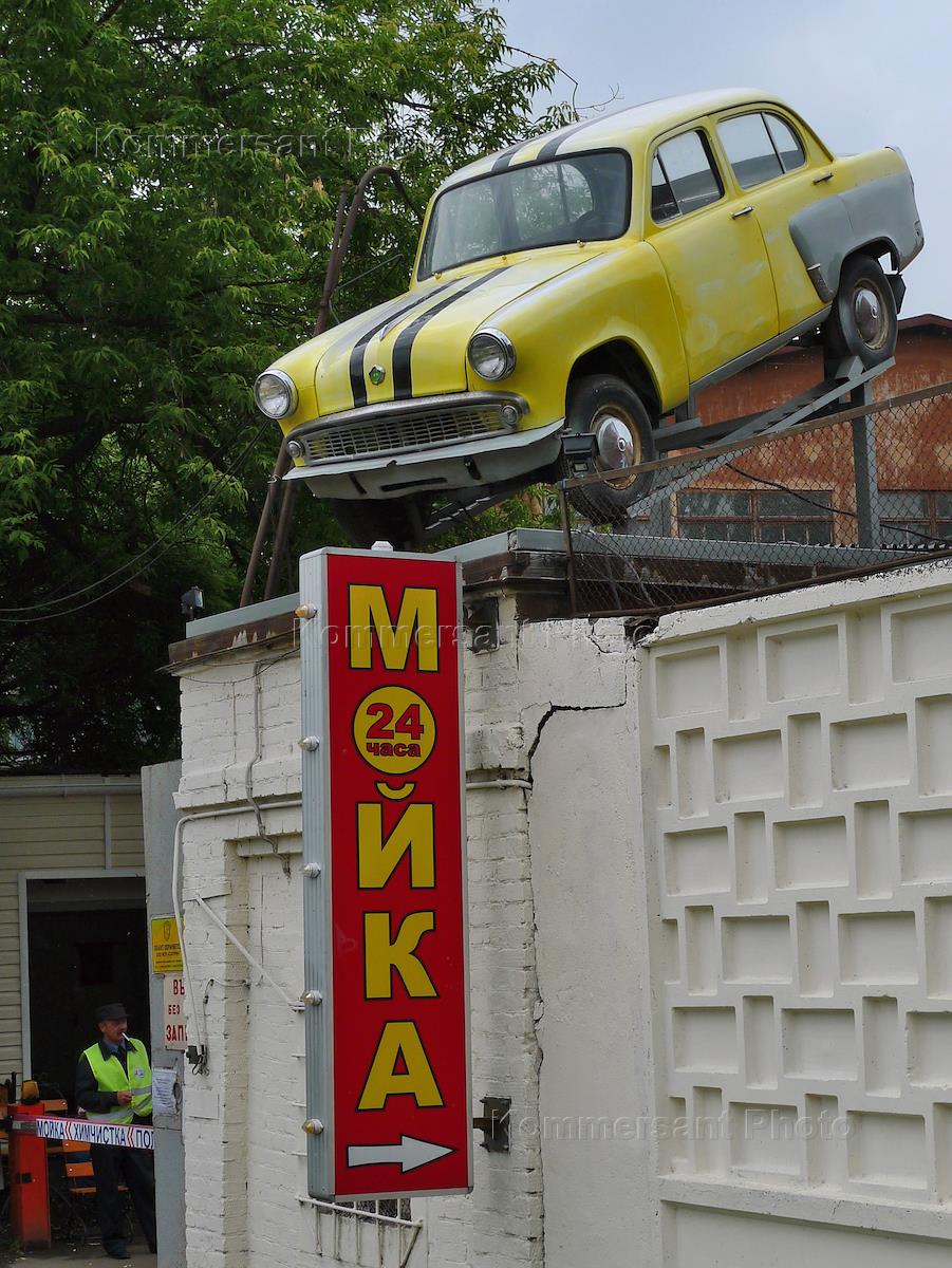 Жанровая фотография. Автомобиль на крыше автомойки.