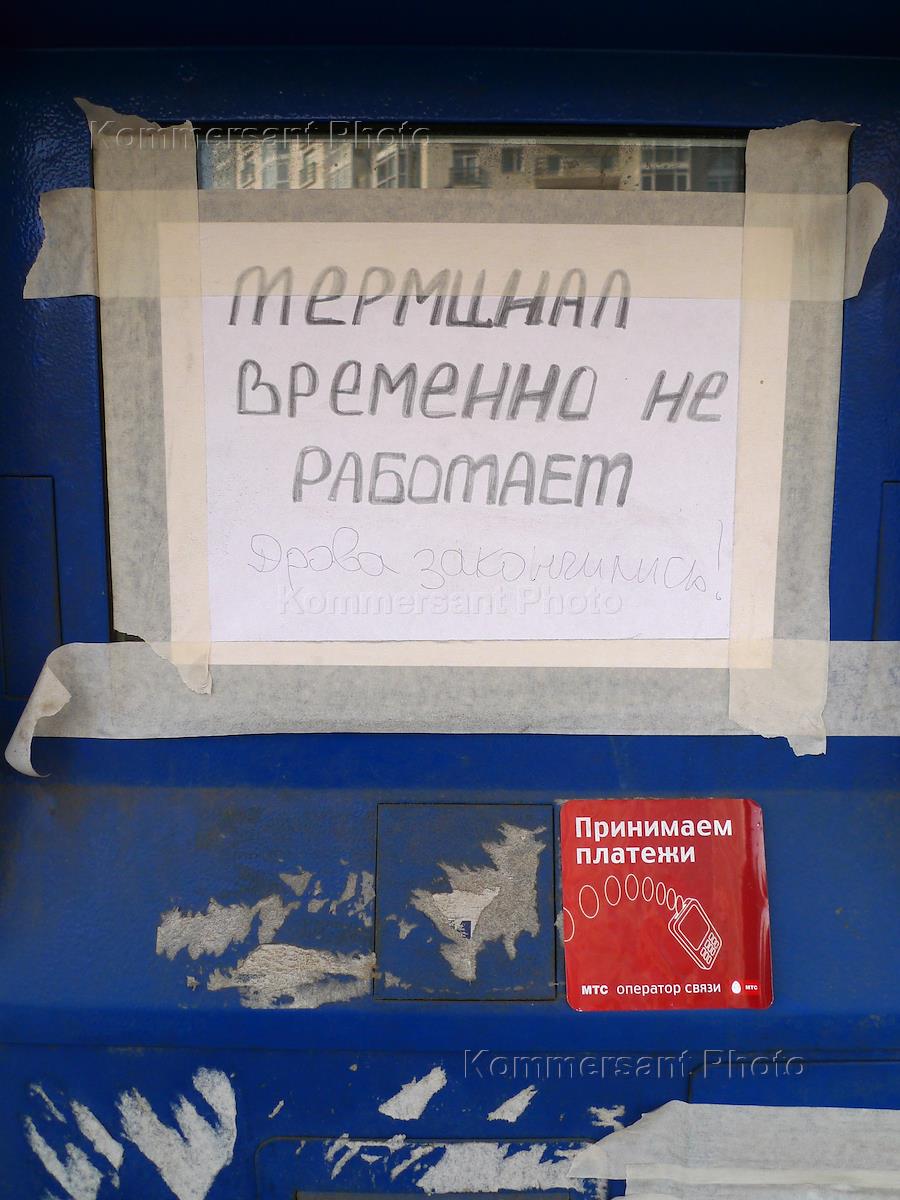 Жанровая фотография. Объявление на терминале по приеме платежей "Терминал временно не работает. Дрова закончились!".