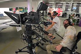 Работа интернет-телеканала "Дождь". Оператор Владимир Коммисаров в студии телеканала.