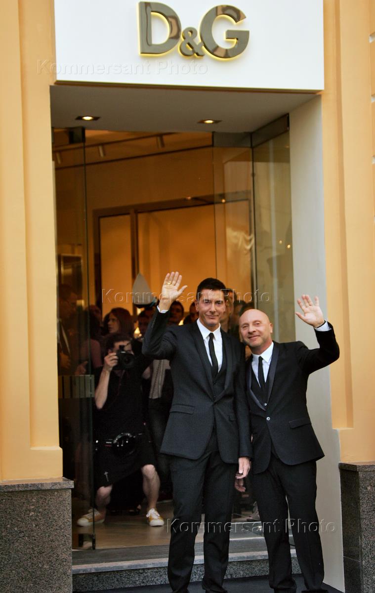 Итальянские дизайнеры Стефано Габбана (слева) и Доменико Дольче (справа) на коктейле по случаю открытия нового бутика Dolce & Gabbana на Кузнецком мосту.