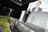 Председатель правления "Ренессанс Капитал" Александр Перцовский во время выступления на XIV ежегодной конференции инвесторов, организованной инвестиционной компанией "Ренессанс Капитал". Конференция прошла в центральном выставочном комплексе "Экспоцентр".