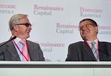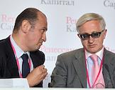 Слева направо: председатель правления "Ренессанс Капитал" Александр Перцовский и председатель наблюдательного совета инвестиционной группы "Ренессанс Капитал" Александр Шохин на XIV ежегодной конференции инвесторов, организованной инвестиционной компанией "Ренессанс Капитал". Конференция прошла в центральном выставочном комплексе "Экспоцентр".