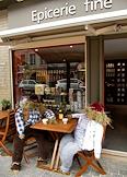 Виды города Онфлер. Куклы из соломы за столиком кафе.