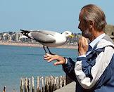Жанровая фотография. Город Сан-Мало. Мужчина кормит чайку.