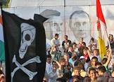 Всероссийский образовательный форум "Селигер-2010". Участники форума из Чеченской республики с флагом Чечни, на котором изображен президент Чечни Рамзан Кадыров.