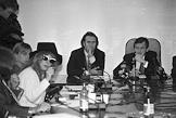 Слева направо в центре: певица Наташа Королева, композитор Игорь Николаев и певица Алла Пугачева во время встречи с руководством налоговой инспекции.