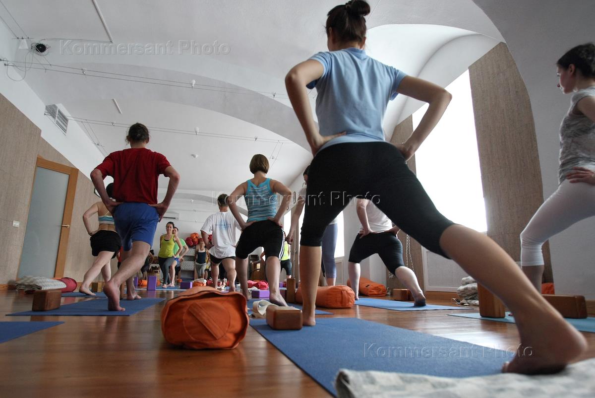 Жанровая фотография. Занятия йогой в центре "Йога-Практика".