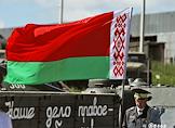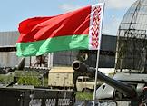 Жанровая фотография. Государственный флаг Республики Беларусь на фоне военной техники.