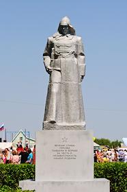 Жанровая фотография. Памятник красногвардейцу в селе Александровка на родине основателя русского народного хора Митрофана Пятницкого. Надпись на постаменте: "Вечная слава герооям, павшим в борьбе за честь и незавивимость нашей Родины".