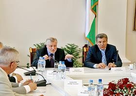 Председатель Совета Федерации России Сергей Миронов (слева) на встрече в парламенте Кабардино-Балкарской республики.