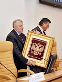 Председатель правительства Кабардино-Балкарии Александр Меркулов во время визита председателя Совета федерации России в Кабардино-Балкарию. Дом Правительства (Колонный зал).