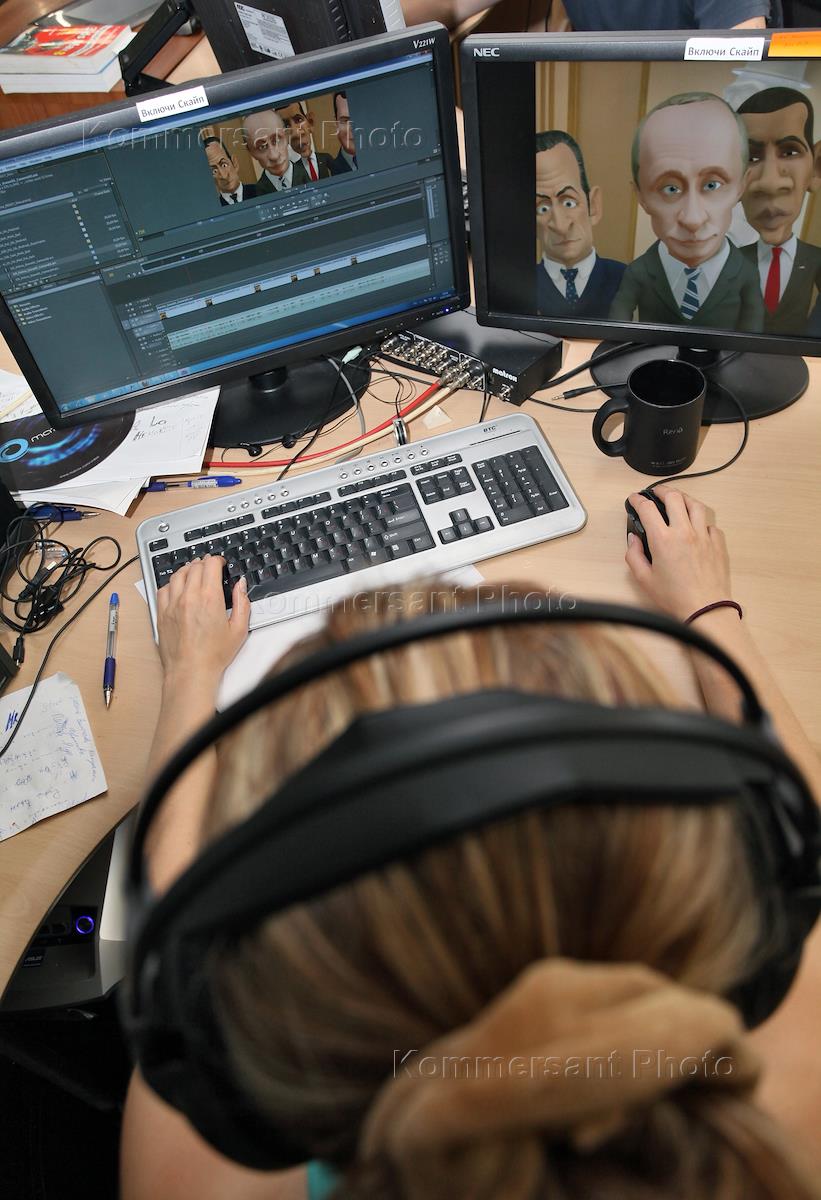 Художники за работой в студии по производству компьютерных анимационных фильмов "Простраство идей".