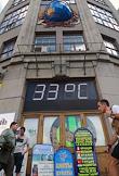 Жанровая фотография. Жара в городе. Термометр на здании Центрального телеграфа показывает температуру воздуха 33 градуса по Цельсию.