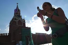 Виды Москвы. Девушка ест мороженое на Красной площади.