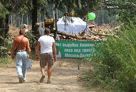Вырубка Химкинского леса в районе аэропорта "Шереметьево". Лагерь защитников Химкинского леса.