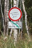 Вырубка Химкинского леса в районе аэропорта "Шереметьево". Лагерь защитников Химкинского леса. Плакат с надписью "Нет вырубке Химкинского леса под трассу Москва-Питер!".