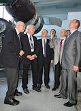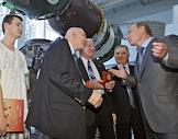Посещение председателем правительства России Владимиром Путиным ОАО "Ракетно-космической корпорации "Энергия" им. С.П.Королева". Слева направо: генеральный конструктор РКК "Энергия" Виталий Лопота, глава Федерального космического агентства России Анатолий Перминов, председатель правительства России Владимир Путин, заместитель руководителя администрации президента России Александр Беглов и заместитель председателя правительства России Сергей Иванов во время посещения музея космонавтики.