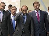 Слева направо: начальник пилотируемых программ Федерального космического агентства России (Роскосмос) Алексей Краснов, командующий космическими войсками России генерал-лейтенант Олег Остапенко и президент-генеральный конструктор РКК "Энергия" Виталий Лопота на совещании руководства космической отрасли России с председателем правительства России Владимиром Путиным. Совещание прошло на территории ОАО "Ракетно-космическая корпорация "Энергия" имени С.П.Королева".