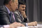 Председатель правительства России Владимир Путин (слева) и заместитель министра экономического развития России Андрей Клепач (справа) во время совещания с руководством космической отрасли России. Совещание прошло в здании ОАО "Ракетно-космическая корпорация "Энергия" имени С.П.Королева".