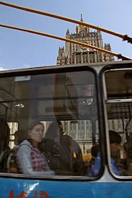 Trolley passing the Russian Foreign Ministry.
