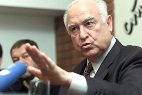 Чрезвычайный и полномочный посол России на Украине, спецпредставитель Президента России по развитию торгово-экономических отношений с Украиной Виктор Черномырдин после пресс-конференции "Об отношениях России и Украины на современном этапе". Пресс-конференция состоялась в пресс-клубе "Четыре стороны".