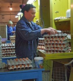 Агропромышленное хозяйство Мурманской области. Упаковка яиц на птицефабрике.