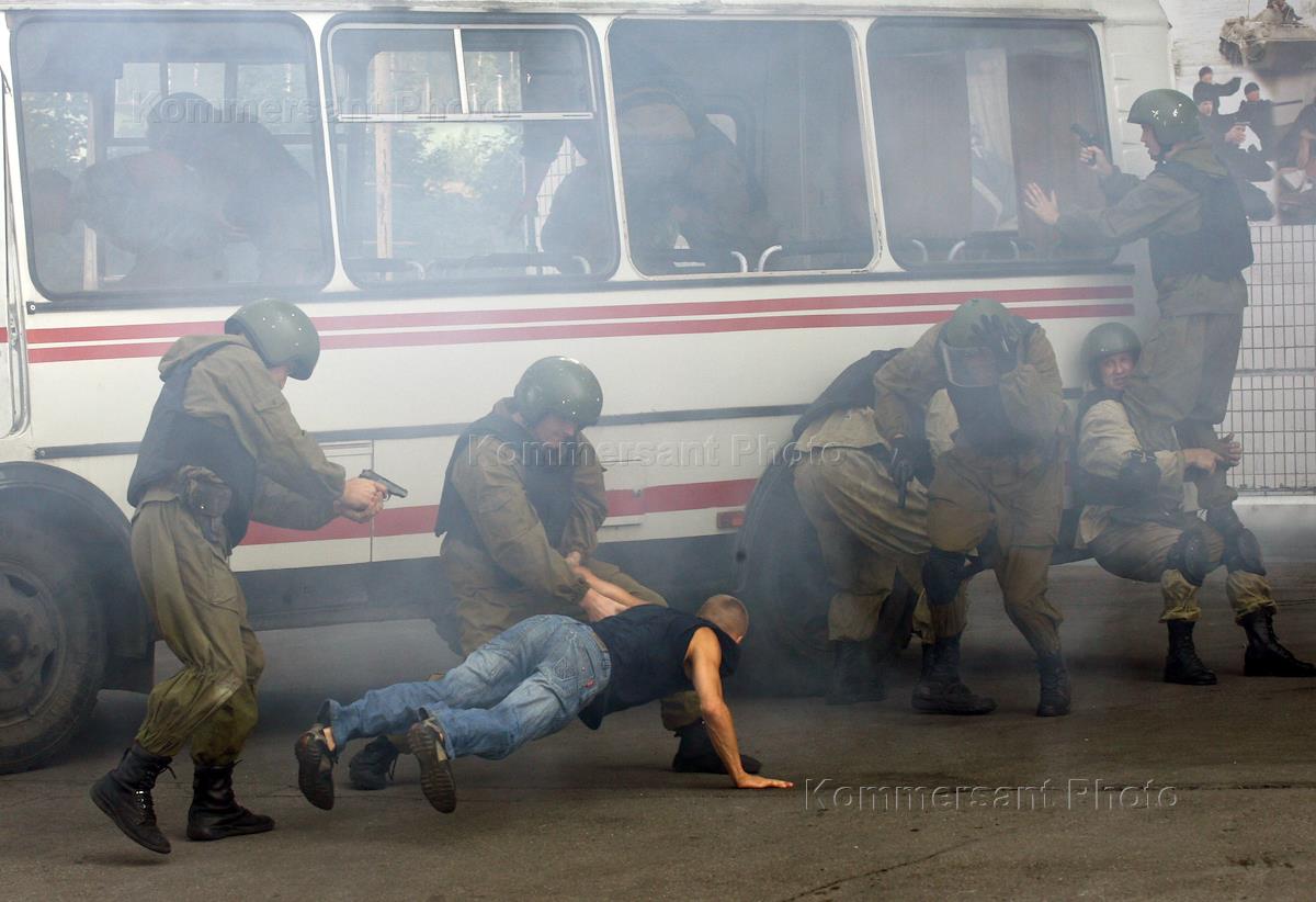 Жанровая фотография. Показательные выступления бойцов ОМОН на базе ОМОН ГУВД по Москве.