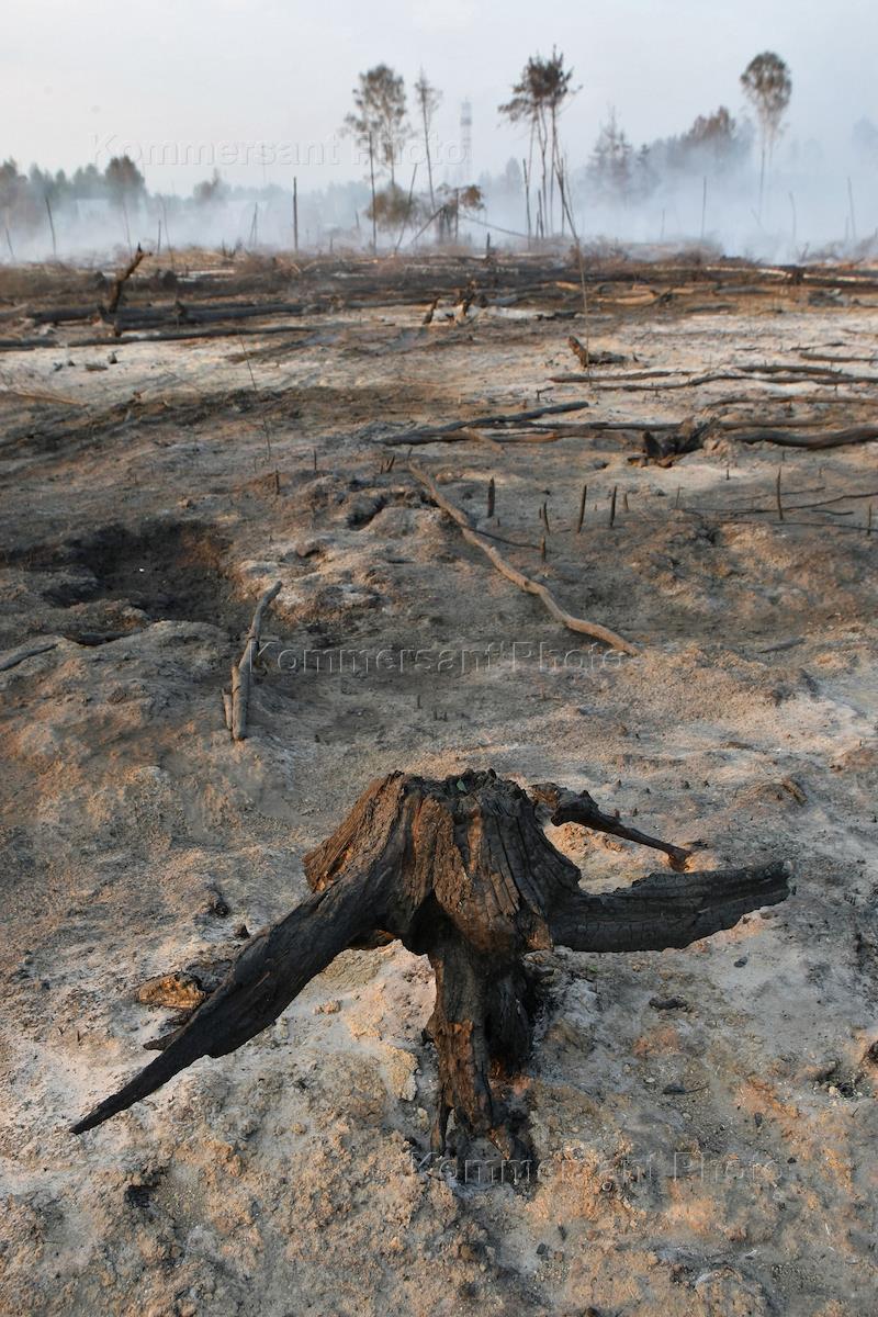 Последствия лесного пожара в Балашихинском районе Московской области.