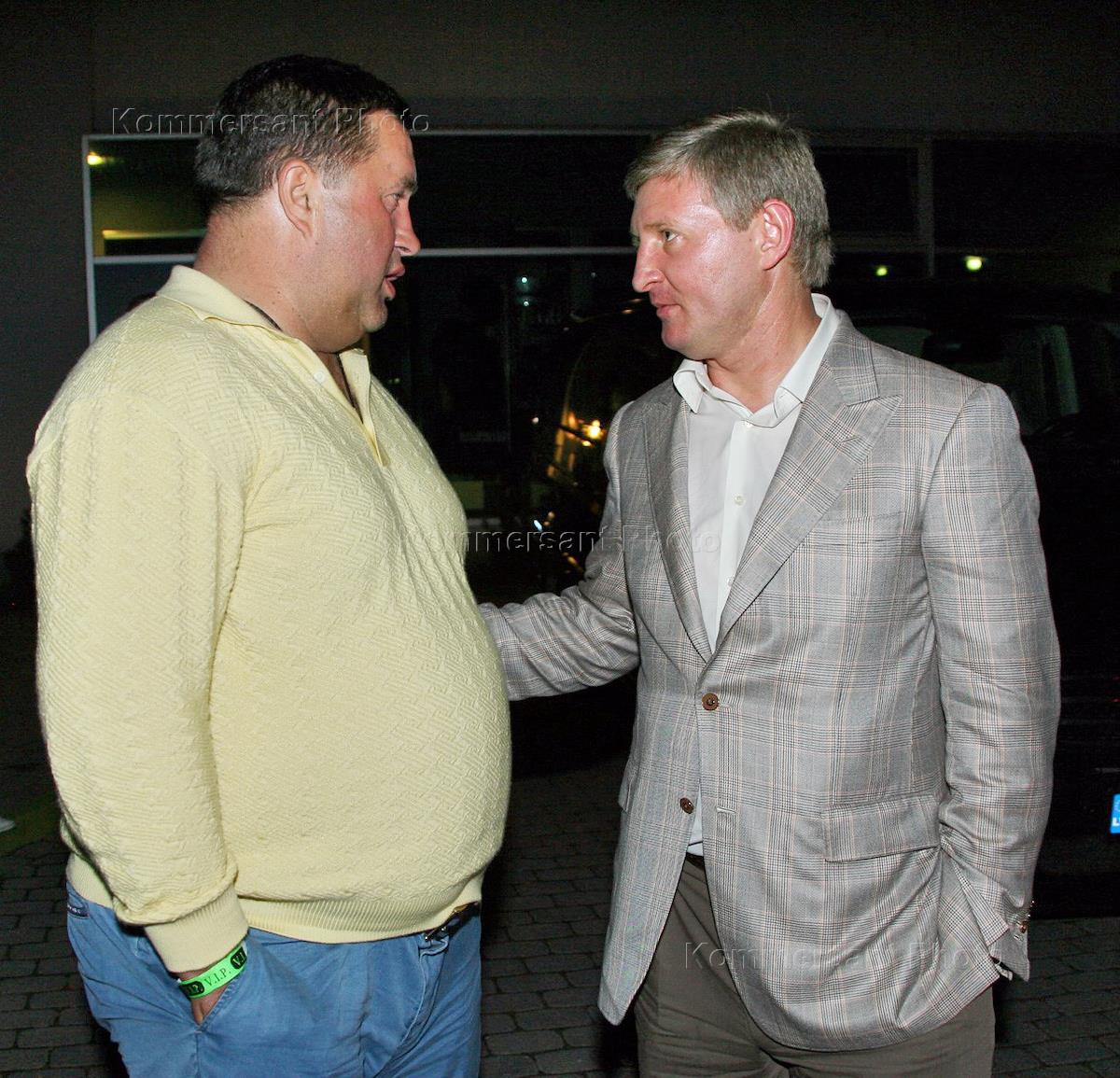 9-й Международный конкурс молодых исполнителей популярной музыки "Новая волна-2010". Предприниматель Сергей Лалакин (слева) и народный депутат Верховной рады Украины VI созыва, фракция Партии регионов Украины (ПР), владелец холдинга "System Capital Management", почетный президент донецкого футбольного клуба "Шахтер" (Донецк) Ринат Ахметов (справа) на вечеринке по случаю первого конкурсного дня. Вечеринка прошла в ресторане La Riva.