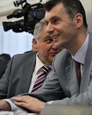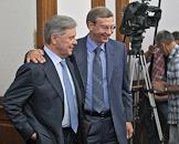 губернатор Московской области Борис Громов (слева) и председатель совета директоров АФК "Система" Владимир Евтушенков (справа) перед заседанием правительственной комиссии по высоким технологиям и инновациям в научно-исследовательском институте природных газов и газовых технологий "Газпром-ВНИИГАЗ" в поселке Развилка Московской области.