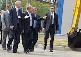 Генеральный директор ООО "Газпром ВНИИГАЗ" Павел Цыбульский (слева), губернатор Московской области Борис Громов (третий справа), председатель правительства России Владимир Путин (второй справа) и заместитель председателя правительства России Сергей Иванов (справа) во время посещения Научно-исследовательского института природных газов и газовых технологий (ВНИИГАЗ) в поселке Развилка Московской области.