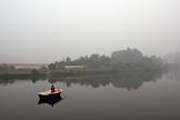 Жанровая фотография. Задымление атмосферы в Москве и Московской области в следствие лесных пожаров. Рыбак на лодке.