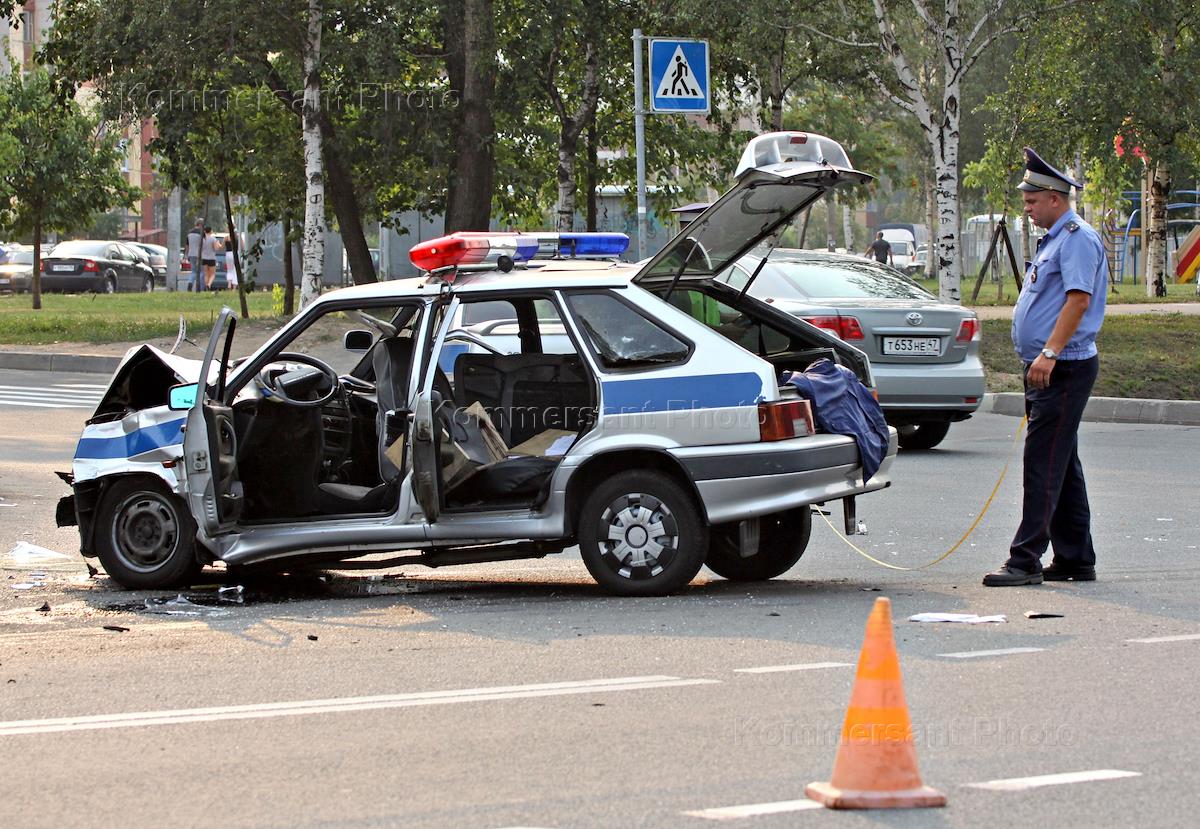 Дорожно-транспортное происшествие с участием инспектора ГИБДД в Приморском районе.