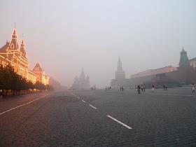 Жанровая фотография. Смог от торфяных и лесных пожаров над Москвой. Красная площадь.