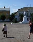 Жанровая фотография. Смог от торфяных и лесных пожаров над Москвой. Молодая семья с ребенком у палатки с арбузами.