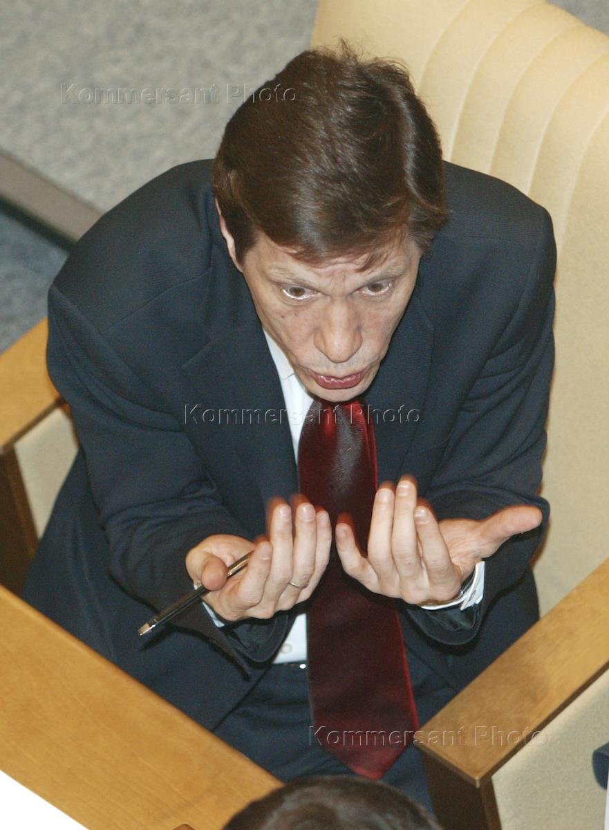 Member of the State Duma (Gosduma) Unity faction, vice chairman of Investors Protection Committee Vladimir Semenov takes part in a Gosduma session.