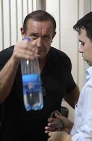 Владелец холдинга "РАТМ" Эдуард Таран (справа), обвиняемый в даче взятки, на рассмотрении ходатайства на его арест в Замоскворецком суде.