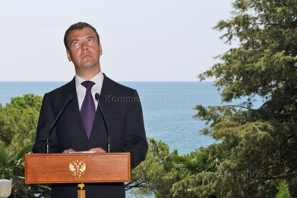 Президент России Дмитрий Медведев во время совместной с премьер-министром Люксембурга Жан-Клодом Юнкером пресс-конференции по итогам переговоров в резиденции "Бочаров ручей".