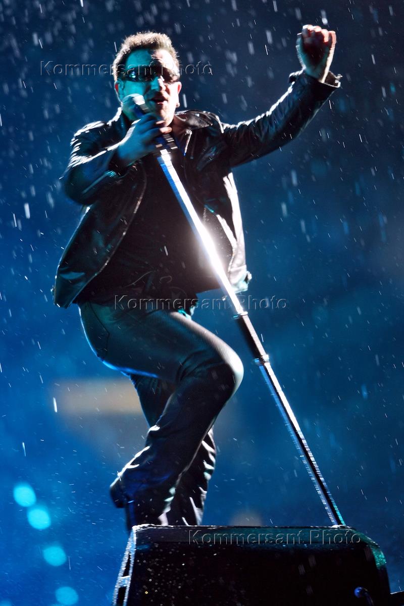 Лидер ирландской рок-группы U2 Боно во время концерта группы на Большой спортивной арене "Лужники".
