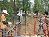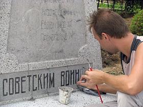 Реставраторы во время реставрационных работ на территории мемориала русским и советским воинам на русском кладбище в Порт-Артуре (китайский город Люйшунь).