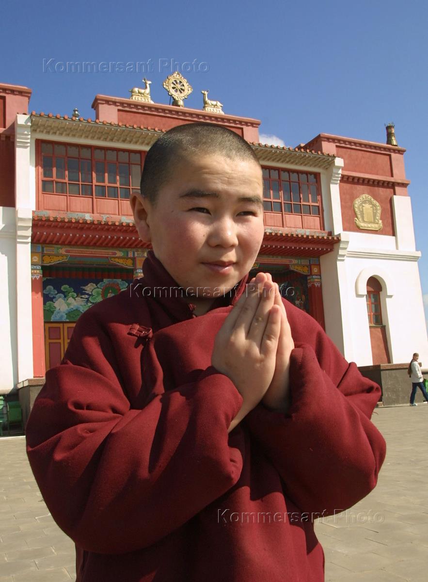 Мальчик-послушник в буддийском монастыре.