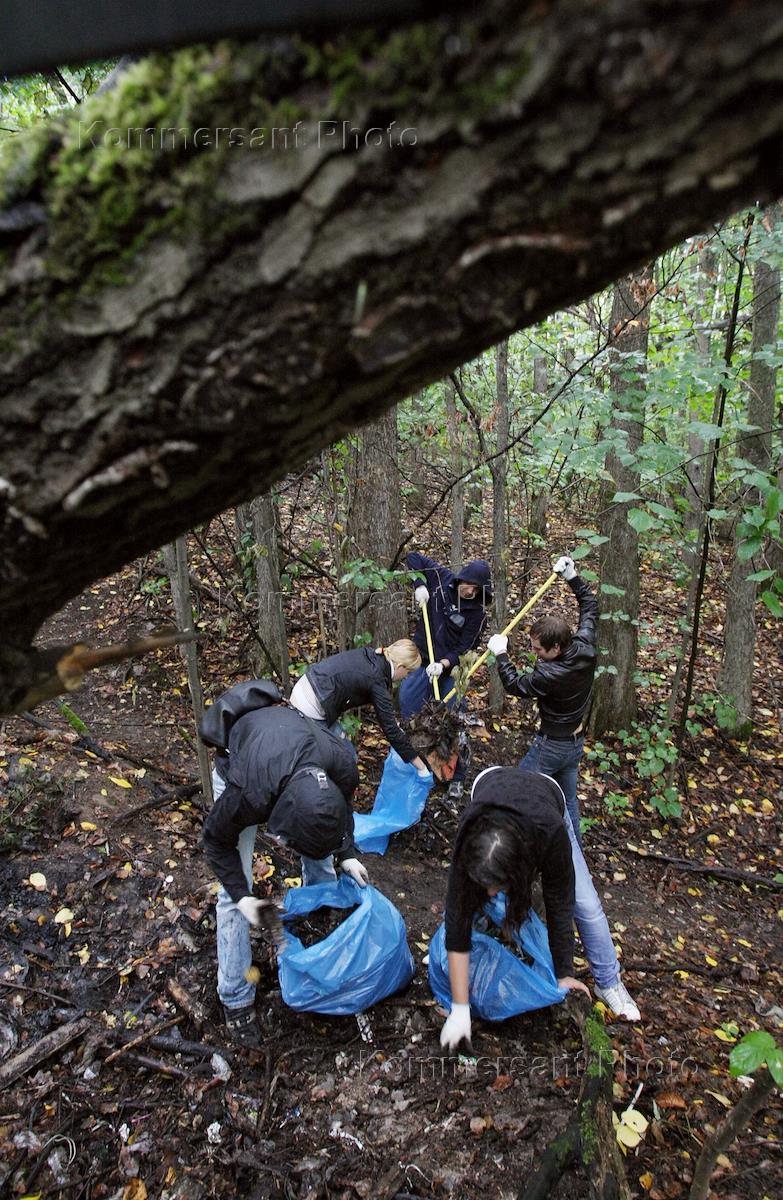 Акция движения "Наши" по уборке мусора и стихийных свалок на территории Химкинского леса.