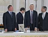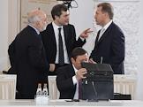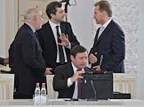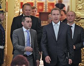 Совместное заседание Госсовета России и комиссии по модернизации и технологическому развитию экономики. Слева направо: председатель совета директоров "Ренова", председатель Комитета по международной деятельности РСПП Виктор Вексельберг, первый заместитель руководителя администрации президента России Владислав Сурков, полномочный представитель президента России в Северо-Кавказском федеральном округе и заместитель председателя правительства России Александр Хлопонин и первый заместитель председателя правительства России Игорь Шувалов во время заседания, посвященного развитию профессионального образования. Заседание прошло в Кремле.