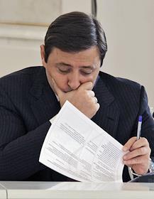 Ректор Московского государственного университета (МГУ) Виктор Садовничий (слева) и министр образования и науки России Андрей Фурсенко (справа) на совместном заседании Госсовета России и комиссии по модернизации и технологическому развитию экономики, посвященном развитию профессионального образования в России. Заседание прошло в Кремле.